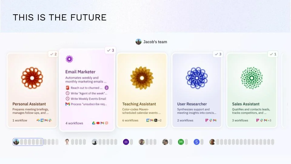 The agents are structured around job descriptions. Each one has defined responsibilities, operates proactively, and accepts natural language feedback. Jacob described the mental model clearly: treat agents as autonomous workers, not as tools you prompt on demand.